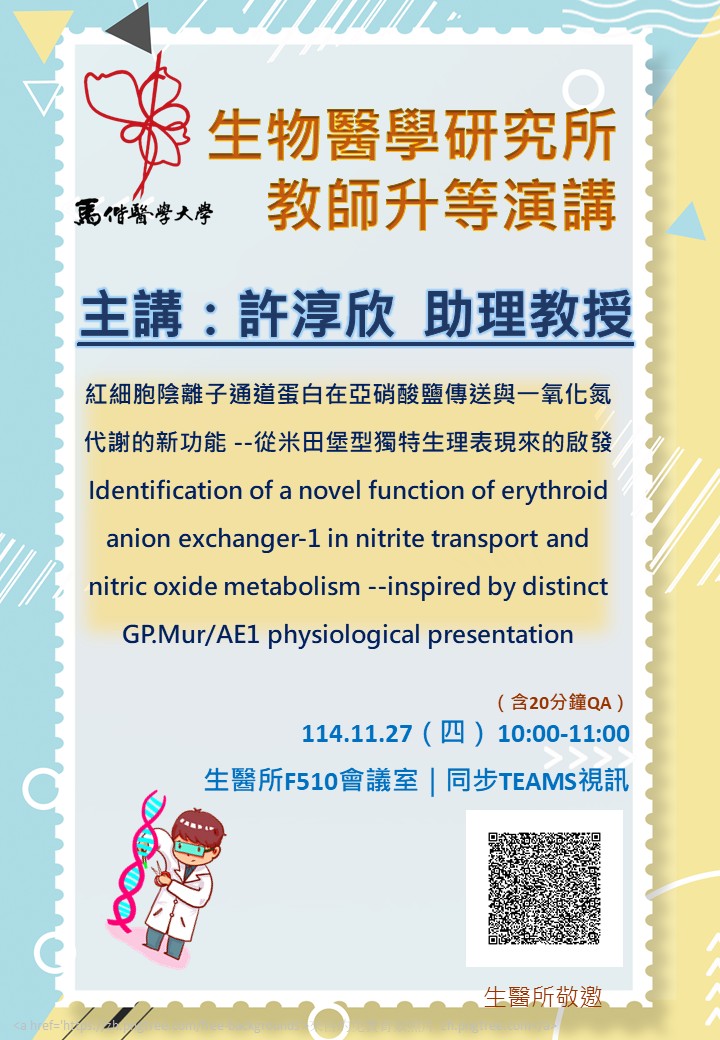 【教師升等演講】1141127舉辦許淳欣老師升等公開演講,開放線上參與聆聽。
